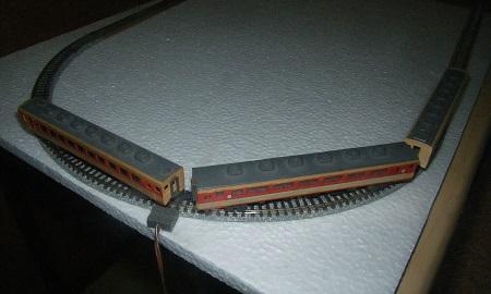 上記、試走の結果、意外と車両がこのミニカーブレール半径177mmを通過