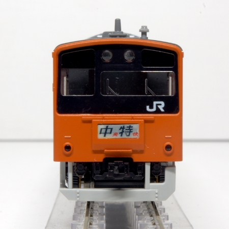 模型は、オレンジ色の車体が鮮やかな中央線快速電車をモデル化しており、特徴的な黒色非対称の前面窓周りなど好ましく再現されたモデルで す。
