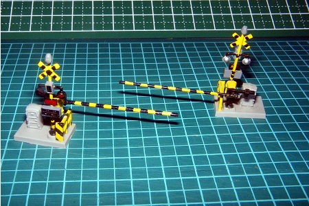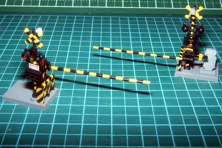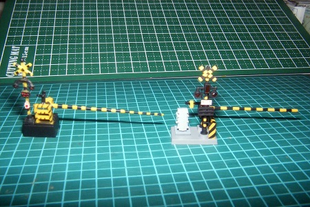 今回製作したグリーンマックスの踏切キットと、トミーテックの踏切を並べてみました。▼(左:トミーテック、右:今回今回組み立てた物)