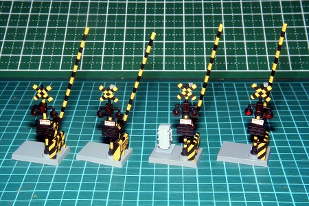 レイアウト内には、踏切が2箇所必要と成るため、追加でもう一セット用意し、2組(計4基)の警報機を組み立てました。