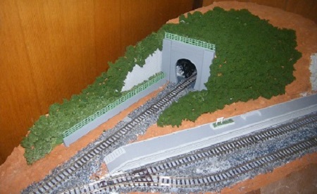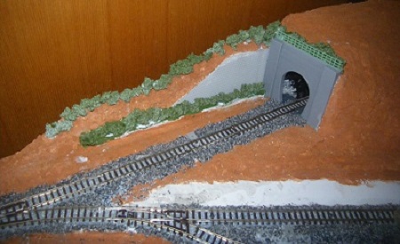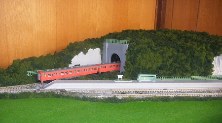 当初、フォーリッジを使用していましたが、あらかた山部分の緑化が終了した辺りから、コースターフを使用することにしました。こちらは、かなり接着しやすく、最初にボンドを薄く塗った箇所にコースターフを撒いて成型し、最後にボンドを薄めたボンド水溶液をたらせば、接着できて施工性が良かったです。量が必要になりますが、最初からコースターフを使用した方が良かったかもしれません。