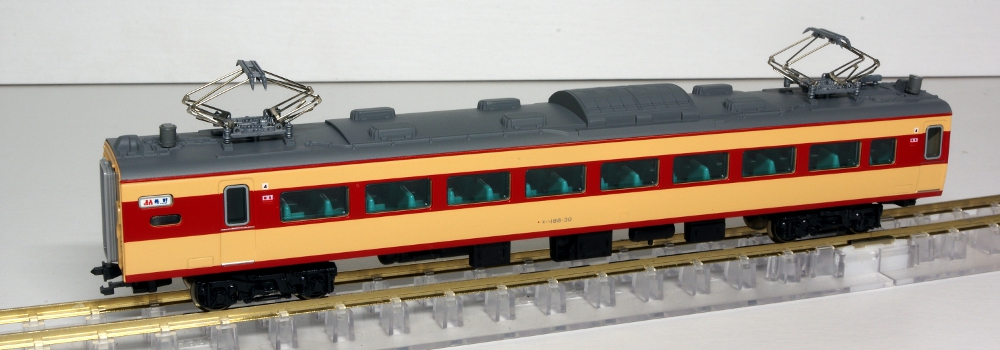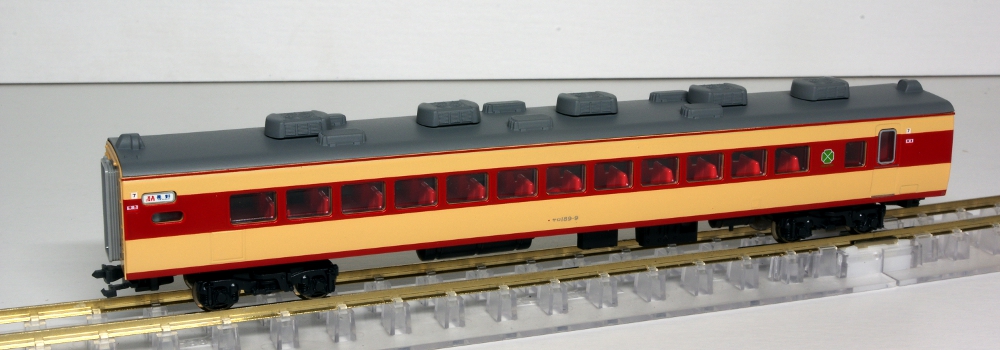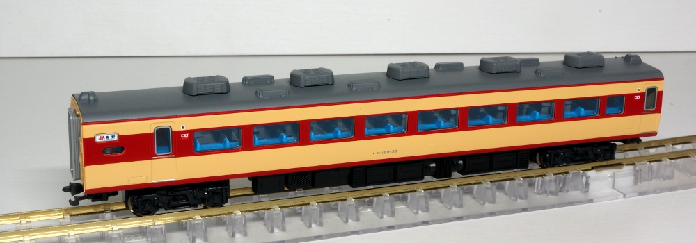 KATOの189系は当時グレードアップ編成は製品化されていましたが、特急色は製品化されていなかったので、歓迎した記憶があります。製品は、サボ・側面方向幕は印刷済み、室内も普通車が青色・グリーン車がエンジ色で成形されており当時精巧な製品だなと思いました。