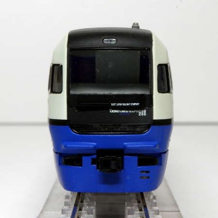 モデルは、253系をベースにした独特の車体形状。白い砂浜をイメージしたホワイトに車体に太平洋の青、菜の花をイメージした黄色を配した鮮やかな塗装が好ましく再現されております。また、車端部の連結面に転落防止板が再現されておりリアルですね。