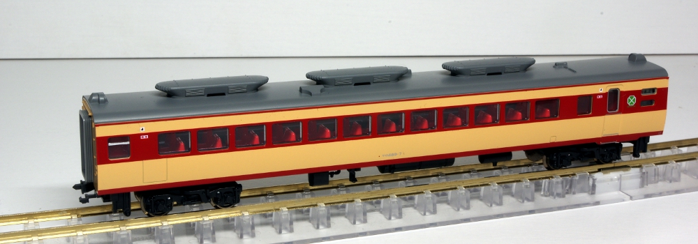 発売当時、KATOの交直流形特急電車で初のボンネット形車両だった事と、TOMIXの489系を入手出来ていなかった事もあり、購入した記憶があります。製品は、号車札・特急札共にサボを印刷済みで表現してあり、当時精巧だなと思いました。