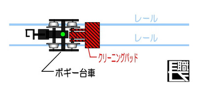(下図を参照)こちらの商品なら、ボギー台車に取り付ければ、台車と一緒に首を振るので、常にカーブの角度に追従してレールの清掃が可能だと考え購入してきました。
