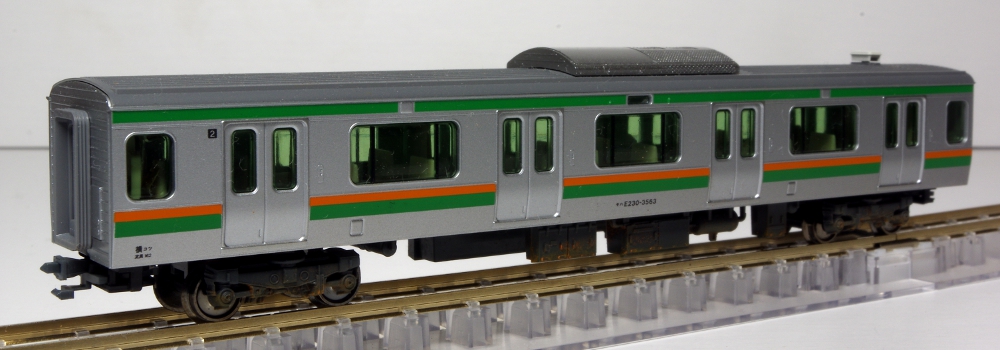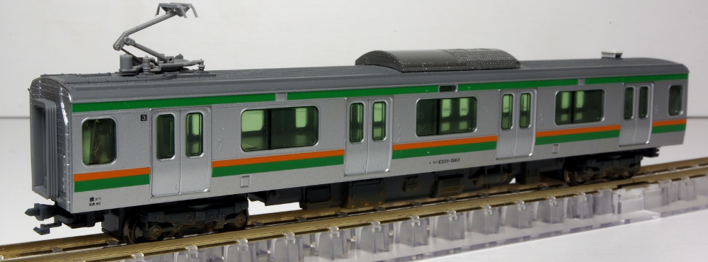E231系近郊形は、学生時代通学に利用していたので慣れ親しんだ形式です。模型は、本当は宇都宮線仕様が欲しかったのですが、そちらには2階建てグリーン車が含まれていないとの事で、東海道線仕様を購入してしまいました。窓桟が1本の編成の方が見慣れていたので良かったのですがね~。